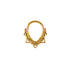 The drop Neptune septum in gold surgical steel features an exquisite hinged segment click-on piercing, teardrop-shaped adorned with heart shapes and tiny spheres along the ring- an outstanding piece of jewellery with a great presence.