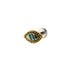 The Agatha labret features a distinctive almond shape, adorned with minuscule golden dots and a central Abalone shell.