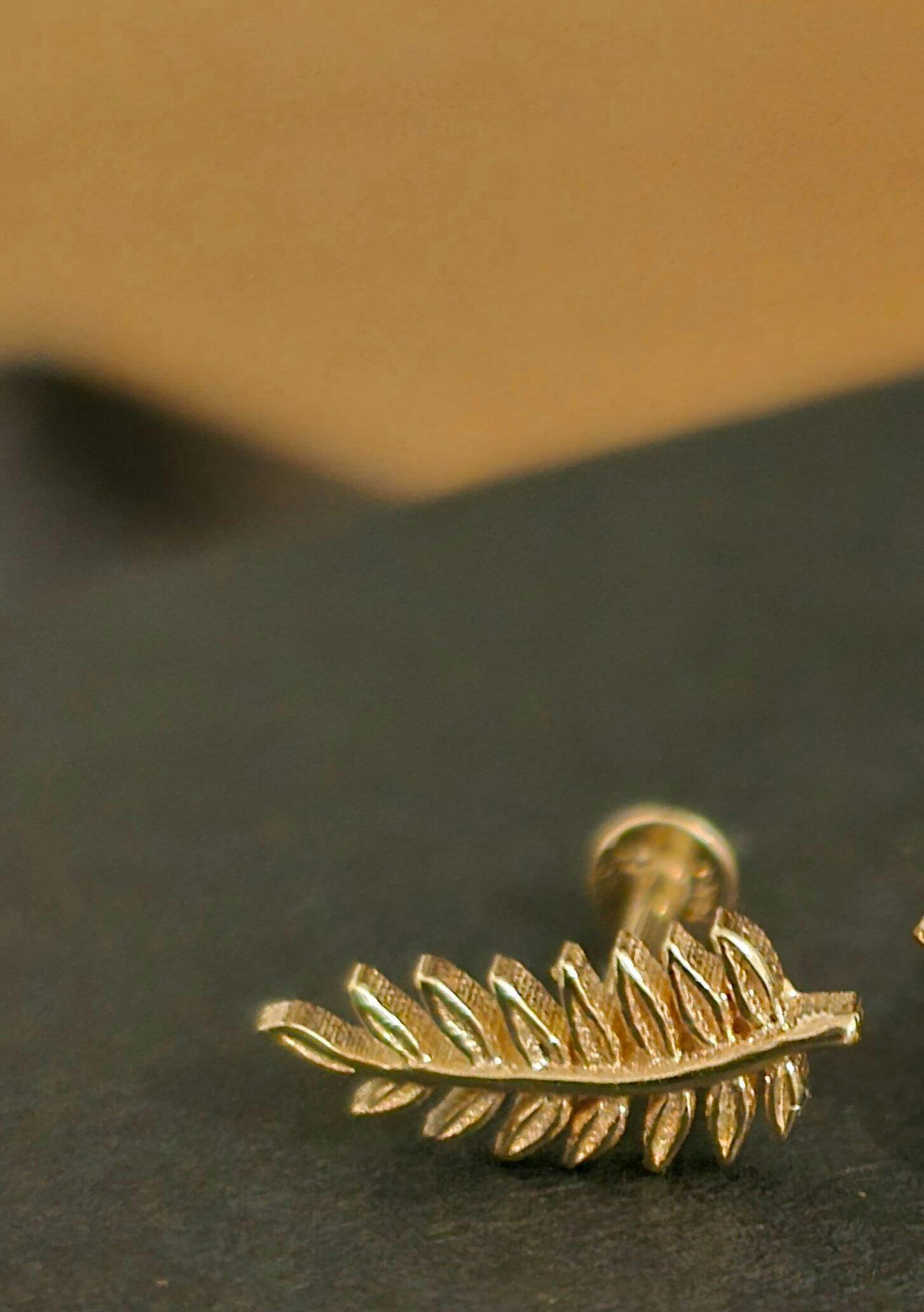 Leaf Flat Back Stud Piercing | Gold Leaf Labret | Tribu