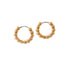 A bohemian twist on a timeless classic, these bronze beaded huggie hoops radiate warmth and character. Their rounded silhouette is accented with delicate beads along the edge, giving them a playful yet refined texture that beams with effortless charm.