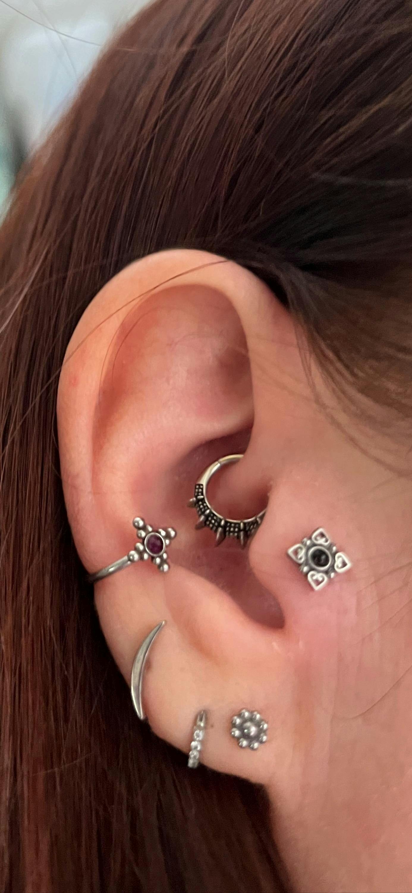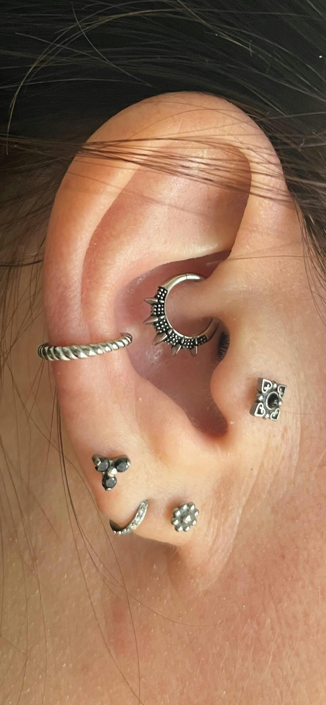 This design is made of 316L surgical steel with internally threaded screw back closure and fits beautifully as a medusa, lip, cartilage or any other piercing you see it suits for.